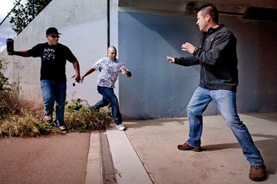 Scott Perkins, un vétéran ( deux déploiements en Irak ) détenteur d’un permis de port d’arme témoigne du combat et décide d’intervenir. Perkins sort son arme de poing et ordonne le conducteur de stopper le combat, ce qui le fait fuir immédiatement.