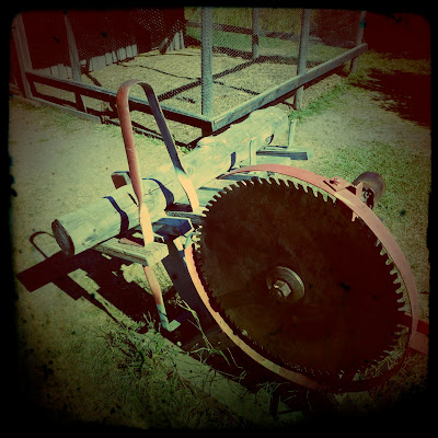 A coté, une grosse scie propulsée par un bras mécanique reflète la dureté de l'hiver a venir. Jugée et condamné, un bout d'arbre s'est résigné aux lois de la thermorégulation.