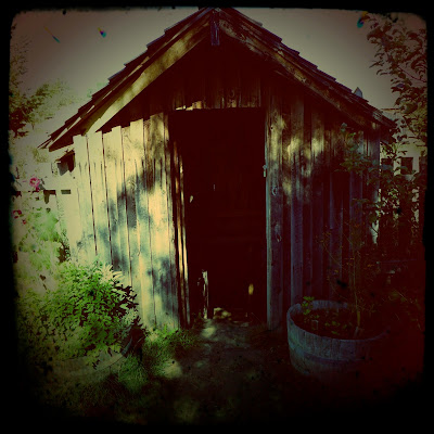 Un peu plus loin le puits. A quelques pas de la cuisine, il se tient au garde a vous sous les pattes d'un arbre reconnaissant. Les arrosoirs semblent fatigués des aller-retours et se reposent sur la palissade, le nez au ciel...comme pour conjurer la pluie.