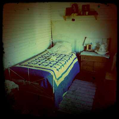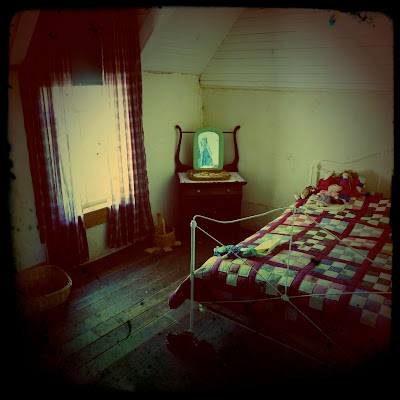 Plus haut quelques chambres fantômes…comme si elles s'étaient faites prendre au piège du temps. Des lits froids. On y ressent encore les prières tardives de leurs hôtes.